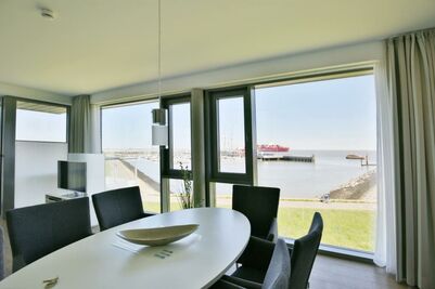 Luxus Seesicht-3-Raum-Wohnung in der 2.Etage mit großem Balkon zur Wasserseite (nord/west). Die vollständige Küchenzeile mit Mikrow., Back., Geschirrsp. etc. garantiert höchsten Komfort. 2x SAT-TV, Blue-Ray-DVD, CD-Kompaktanlage, kostenloses W-Lan, 2 separate Schlafzimmer mit hochwertigen Doppelbetten (alle mit Außenjalousien), allergikerfreundlich, ebenerdige Dusche/WC, Föhn, freie Saunanutzung, breiter Tiefgaragenstellplatz, keine Haustiere und natürlich Nichtraucher.