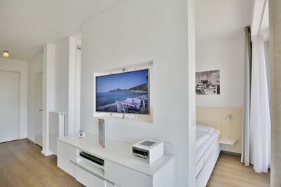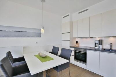Appartement der Extraklasse mit Seesicht! Das hochwertige Interieur in diesem App. für 2 Pers. für Ihren Wohlfühlurlaub. Großer Balkon mit Seesicht (ost), vollständige Küchenzeile mit Mikrow., Geschirrspüler etc., das gesamte App. ist über Außenjalousien abzudunkeln, SAT-TV (drehbar zum Bett), Blue-Ray-DVD, CD-Kompaktanlage, USB-Steckdosen, kostenloses W-Lan-Internet, allergikerfreundlich, ebenerdige Dusche/WC, Föhn, freie Saunanutzung, reservierter Außenstellplatz am Haus, keine Haustiere und natürlich Nichtraucher.