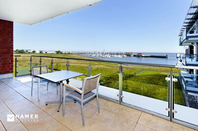 Seesicht und Südbalkon!. Komfortable 3 Zi. Luxus-Wohnung über 91m², 2. Etage, großzügiges Wohnzimmer mit großem Balkon (nord), ein weiterer Balkon zur Südseite an den Schlafzimmern, vollständig ausgestattete Küchenzeile, 2 Schlafzimmer mit Doppelbetten und Außenjalousien, 2xTV, DVD, Radio/CD, kostenloses W-Lan-Internet, 1xDu/WC, 1x Gäste-WC, reservierter Außenstellplatz, freie Saunanutzung, Nichtraucher, keine Haustiere.