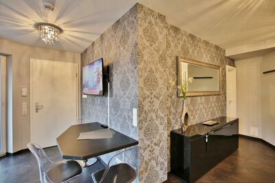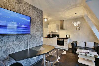 Neubauluxus am Dünenweg. Schöne 3-Raum-Wohnung im 2.OG mit Aufzug, Wohnzimmer mit Küchenzeile (Back, Mikrow., Geschirrsp.) 1 Schlafzimmer mit Doppelbett, 1 Schlafzimmer mit 1 Einzelbett, 2x/DU/WC, 3 x Kabel-TV, Stereo, kostenfreies W-Lan, 2 Balkone (Seesicht, nord/west und süd), keine Haustiere gestattet, Nichtraucher, reservierter Pkw-Stellplatz #5 vor dem Haus.