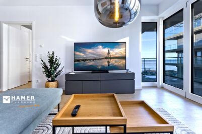 Großzügige 3-Raum-Seesichtwohnung mit 100m² auf der 2. Etage direkt an der Duhner Spitze für bis zu 4 Personen. Großes Wohnzimmer mit TV, abgetrennte Küchenzeile mit Vollausstattung (Geschirrspüler, Gefrierschrank etc.), 2 Schlafzimmer mit Doppelbetten (1x mit TV) und Rollläden, 1xDU/WC, kleine Infrarot-Sauna u. Waschmaschine i.d. Wohnung. Ein Highlight ist der große Balkon über Eck (süd-ost) mit Seesicht und Sonne (eine Seltenheit in Cuxhaven). Komfortabler Pkw-Stellplatz #86 in der Tiefgarage. Personenaufzug, keine Haustiere gestattet und natürlich handelt es sich um eine  Nichtraucherwohnung,
