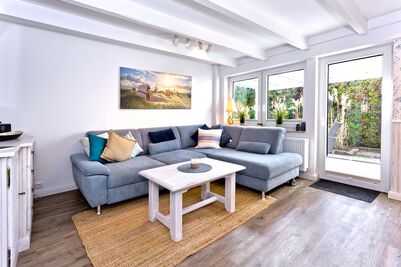 Tolles und aufwendig saniertes Ferienhaus am Rande der Duhner Heide gelegen über ca. 80m² (auf 250m² Grundstück), vollständig bis max. 5 Pers. ausgestattet. 2 Schlafzimmer (1x Doppelbetten, 1x ausziehbares Doppelbett, 1x Einzel 90x200 ausziehbare Récamiere mit Topper), schönes Wohnzimmer mit Kaminofen (kein Holz vor Ort - Nutzung auf eigene Gefahr), SAT-TV, vollständig ausgestattete Küchenzeile (Backofen, Geschirrspüler, Mikrowelle, großes Gefrierfach), große Terrasse (überdacht), kostenloses W-LAN Internet, 1xDu/WC, 1xGäste-WC, eigene Waschmaschine, Flur, Nichtraucher, keine Haustiere, Pkw-Stellplatz am Grundstück. Im Sommer steht ein Bäckerwagen in ca. 350m Entfernung.