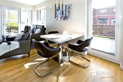 Haus Kapitän Alexander, direkt an der Marina Cuxhaven gelegene Neubauwohnung – NEU RENOVIERT und NEU MÖBLIERT Oktober 2024 – ca. 78m². Tolle 3 Zimmer-Luxus-Wohnung im Erdgeschoss für max. 3 Pers. ausgestattet. Großzügiges Wohnzimmer mit Terrasse (nord/ost). Die Terrasse ist teilweise windgeschützt als Loggia zu nutzen. Vollständig ausgestattete Küchenzeile, 1 Schlafzimmer mit Doppelbett (RÖWA Lattenrost elektr. verstellbar) und TV, Fliegengitter und großem Einbauschrank, 1 Schlafzimmer mit Einzelbett (Lattenrost elektr. verstellbar). Alle Räume sind über elektr. Außenjalousien zu verdunkeln. Fußbodenheizung, Kostenfreies W-Lan-Internet, Kabel-TV und Magenta TV, Nespresso Maschine, barrierefreie Dusche/WC, Miele-Waschmaschine und Miele-Trockner in der Wohnung. Reservierter Pkw-Stellplatz im Carport #8, Fahrradkeller, Nichtraucher und es sind keine Haustiere gestattet.
