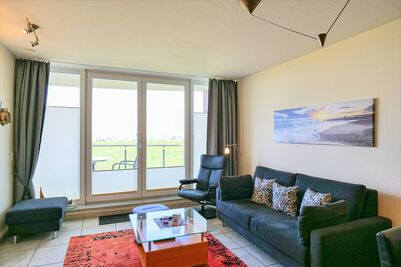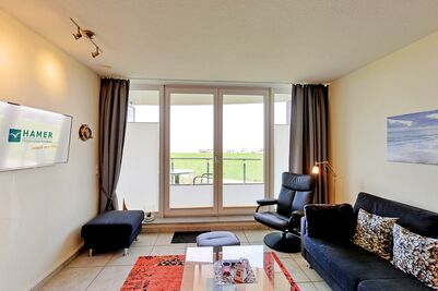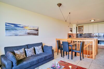 Schöne 2-Raum Wohnung über zwei Etagen auf ca. 60m² für 2 Personen. Das Schlafzimmer im EG mit Doppelbett Kabel-TV. Du/Wc. Im 1. OG befindet sich das Wohnzimmer mit Kabel-TV und offener Küchenzeile mit Vollausstattung (Geschirrsp. Mikrow, Back,) Balkon zur Wasserseite mit dem einmaligen Blick auf die Elbmündung. W-Lan kostenfrei. Die Wohnung ist komplett gefliest, verfügt über Fußbodenheizung und ist allergikergerecht ausgestattet. Tiefgaragenstellplatz #3 (Durchfahrtshöhe 1,90m). Keine Haustiere erlaubt. Nichtraucher.