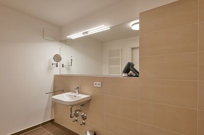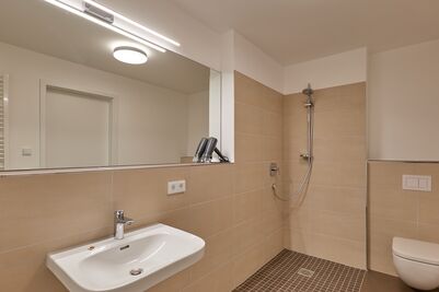 Neubau Mai 2023! Sehr schöne, moderne 3-Raum-Wohnung bis 4 Pers. voll ausgestattet auf ca. 91 m² in der 2.Etage gelegen, 2 Schlafzimmer mit komfortablen Doppelbetten (Bettwäsche inkl.) und Außenjalousien an allen Fenstern, ebenerdige Dusche/WC, Wohnzimmer mit großer Küchenzeile (Backofen, Geschirrspüler, Mikrowelle), 3x Kabel-TV, Radio, kostenfreies W-LAN-Internet, kleiner Balkon (nord) mit Teilseesicht, Personenaufzug, reservierter Pkw-Stellplatz in der Tiefgarage inkl., es sind keine Haustiere erlaubt und natürlich Nichtraucher. Durchfahrtshöhe Tiefgarage: 2,05m.