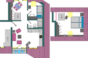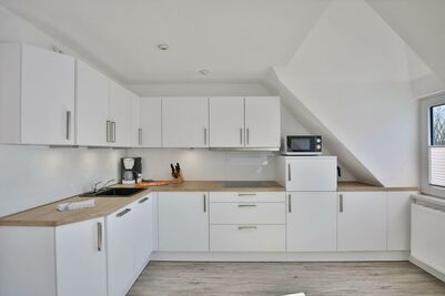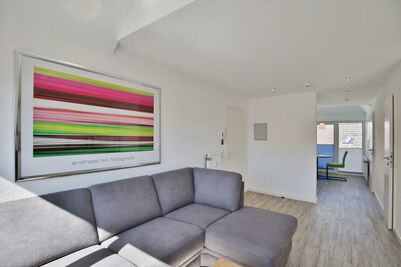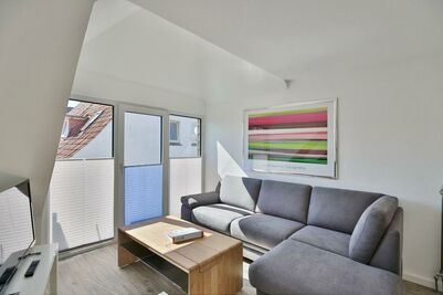 Schöne 3-Raum-Wohnung über 2 Etagen mit 2 kleinen Balkonen (ost&west), hochwertig ausgestattet bis 3 Pers., 1 Schlafzimmer mit Einzellbett, 1 Schlafzimmer mit Doppelbett & TV, Wohnzimmer mit Küchenzeile (Mikrowelle, Geschirrspüler, Dunstabzug), TV mit DVD, separater Essbereich. Neue Dusche/WC, kostenloses W-Lan Internet, keine Haustiere, Nichtraucher, Pkw-Stellplatz #14 hinter dem Haus.