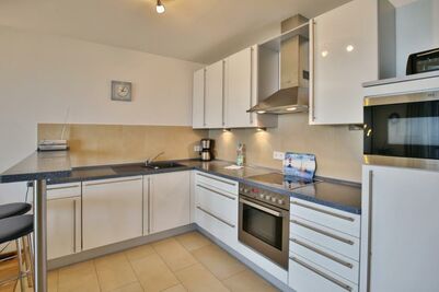 Großzügige 102m² Wohnung in der 1.Etage. Hier haben Sie die Traumseesicht auf den Weltschifffahrtsweg und die Hafenanlagen. 1 Schlafzimmer mit Doppelbett und TV, 1 Schlafzimmer mit Schlafsofa, 1 Bad/Du/Wc und 1 Gäste-Wc, sehr großes Wohnzimmer mit komplett ausgestatteter Küchenzeile, TV u. BlueRay DVD, Radio mit Dockingstation, 2 große, windgeschützte Balkone (nord+süd). Alle Räume sind mit Parkett gestaltet und verfügen über Rollläden. Zur Wohnung gehört ein reservierter Pkw-Stellplatz in der Tiefgarage. Keine Haustiere. Nichtraucher.